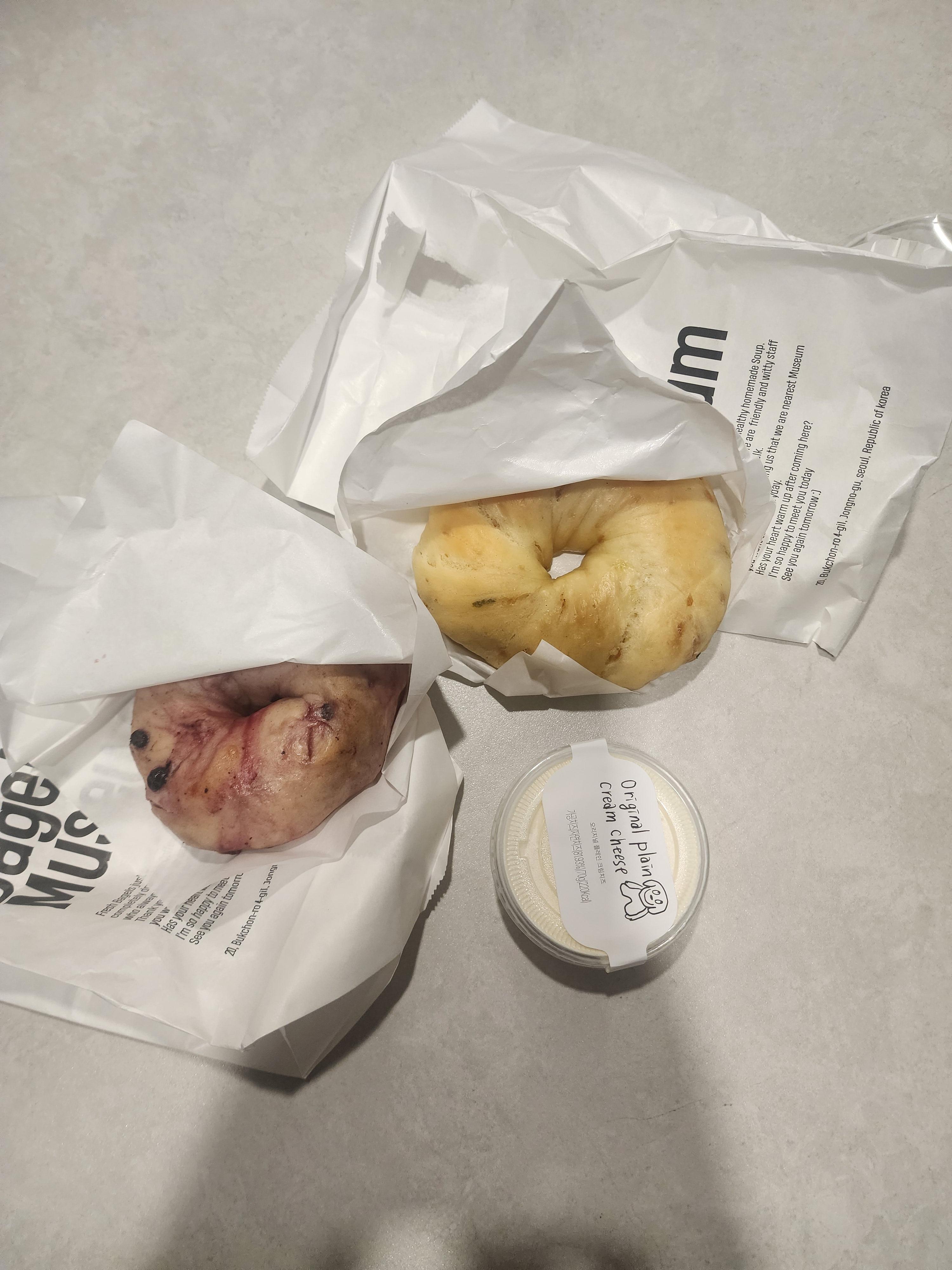 판매한 베이글은 두 종류인데요. 블루베리 베이글, 어니언 베이글, 크림치즈를 판매하였습니다.